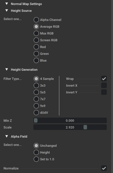 - 이미지를 넣으면, 이런저런 옵션 값으로 Normal을 생성해 준다.