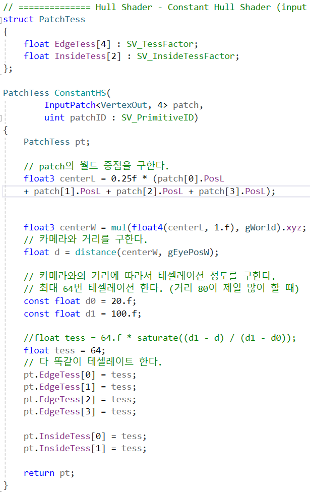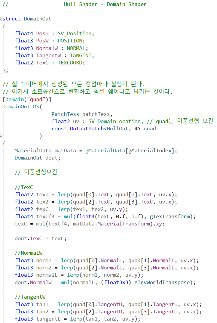 - 테셀레이션을 한 결과에 변위를 적용시키는 것이다.