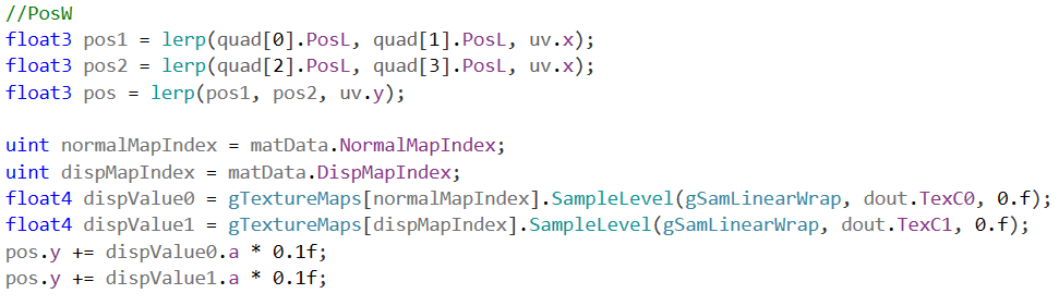 (Common.hlsl에 MaterialData에 uint DispMapIndex 멤버를 추가한다.)