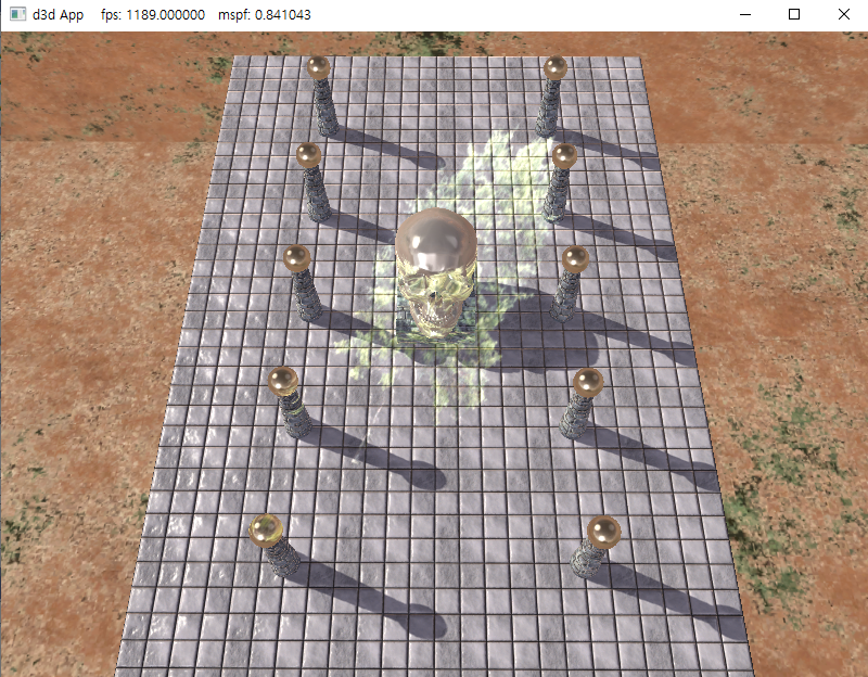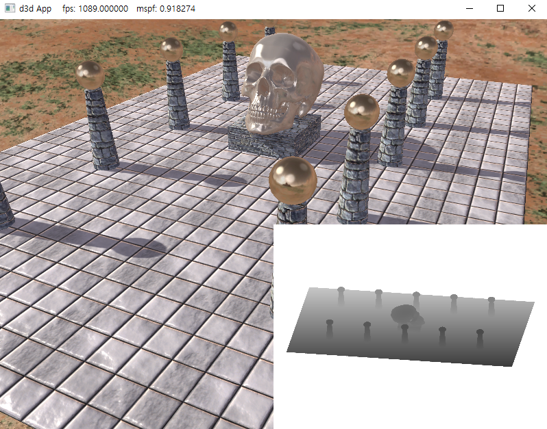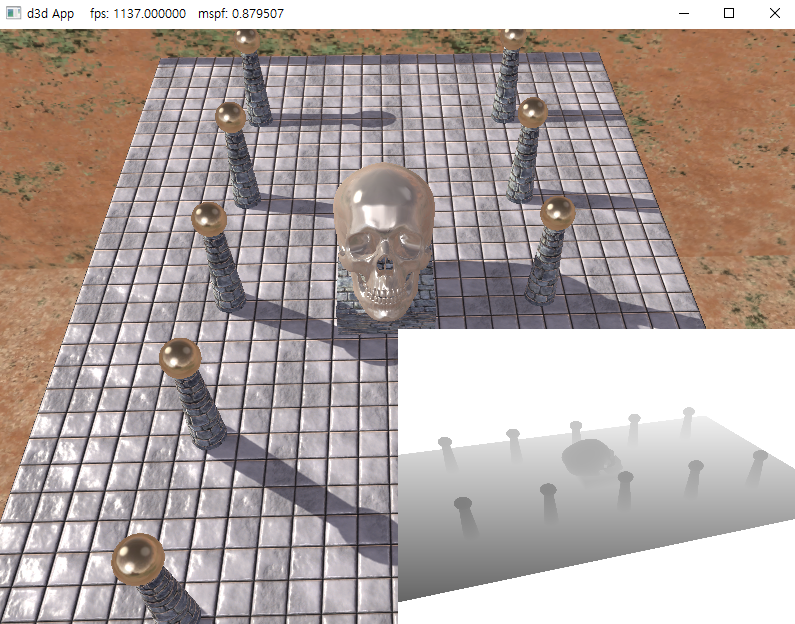 - 예제에서는 광원이 계속 회전하도록 하였다. (Shadow Map은 Draw()에 같이 걸리니까 상관없지만.) Shader에서 사용하는 Texture Coordinates를 얻게 하는 행렬(리소스)을 틱마다 업데이트를 해서 넘겨주어야 한다.