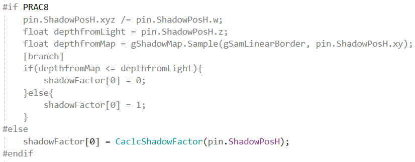 - 위처럼, App에서 넘겨준 변환 행렬을 이용해서 'Shadow Map sampling을 한 값'과 ' 카메라에서 해당 픽셀까지의 거리(depth)를 비교하여 그림자 판별을 하는 것이다.