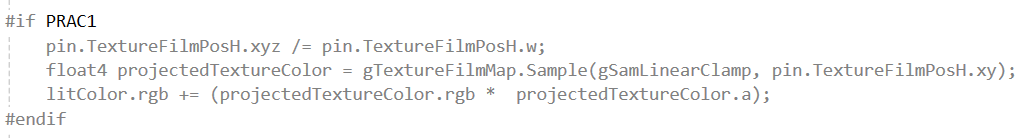 연습문제 1번인 것 같아서, 그냥 조명 느낌쓰로 Texture Projection를 벗어나면 조명을 아예 받지 못하도록 만들었다.