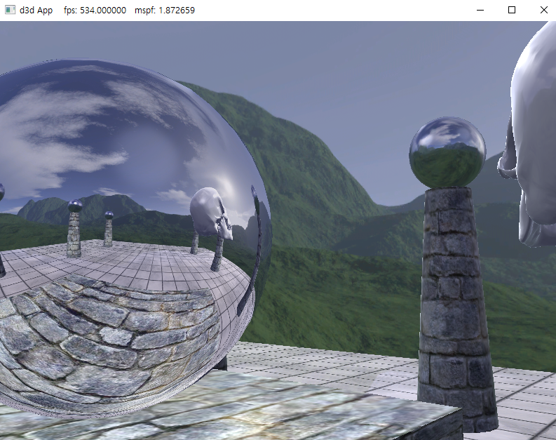 (사실 이해했는지 모르겠다. 어렴풋이 느껴질 뿐... 그래도 그 느낌을 정리한다.) 1. CubeMap과 환경 매핑 - 플레이어(카메라) 가까이 Mesh들이 있는 Level이 아니라, 예제 사진처럼 환경을 그려주고, 반사되는 물체에도 적절히 환경 반사상을 그려주어서, 심미적인 효과를 주는 것이 이번 예제의 목표이다. - 이를 위해서는(예제와 같은 결과가 나오기 위해서는) 주변 환경을 나타내는 6장의 Texture를 가진 환경맵이 필요하고, 해당 텍스쳐의 포맷인 D3D12_SRV_DIMENSION_TEXTURECUBE에서 픽셀을 참조하기 위해 필요한, LookUp 벡터로 샘플링을 해야 한다. 2. TextureCube 맵 과 LookUp Vector - 일단 환경 자체를 그리는 방법을 먼저 보면, 예제에서..